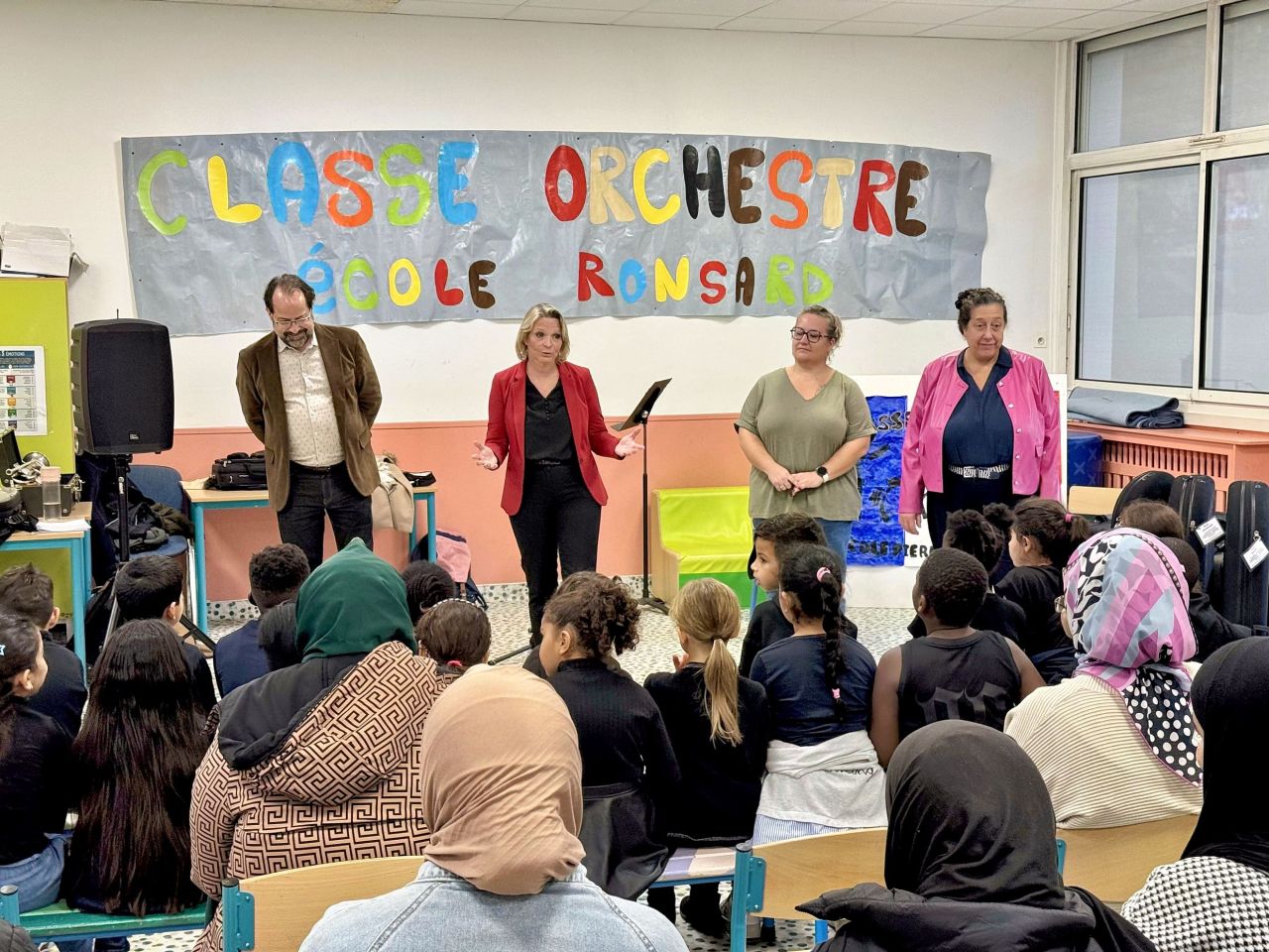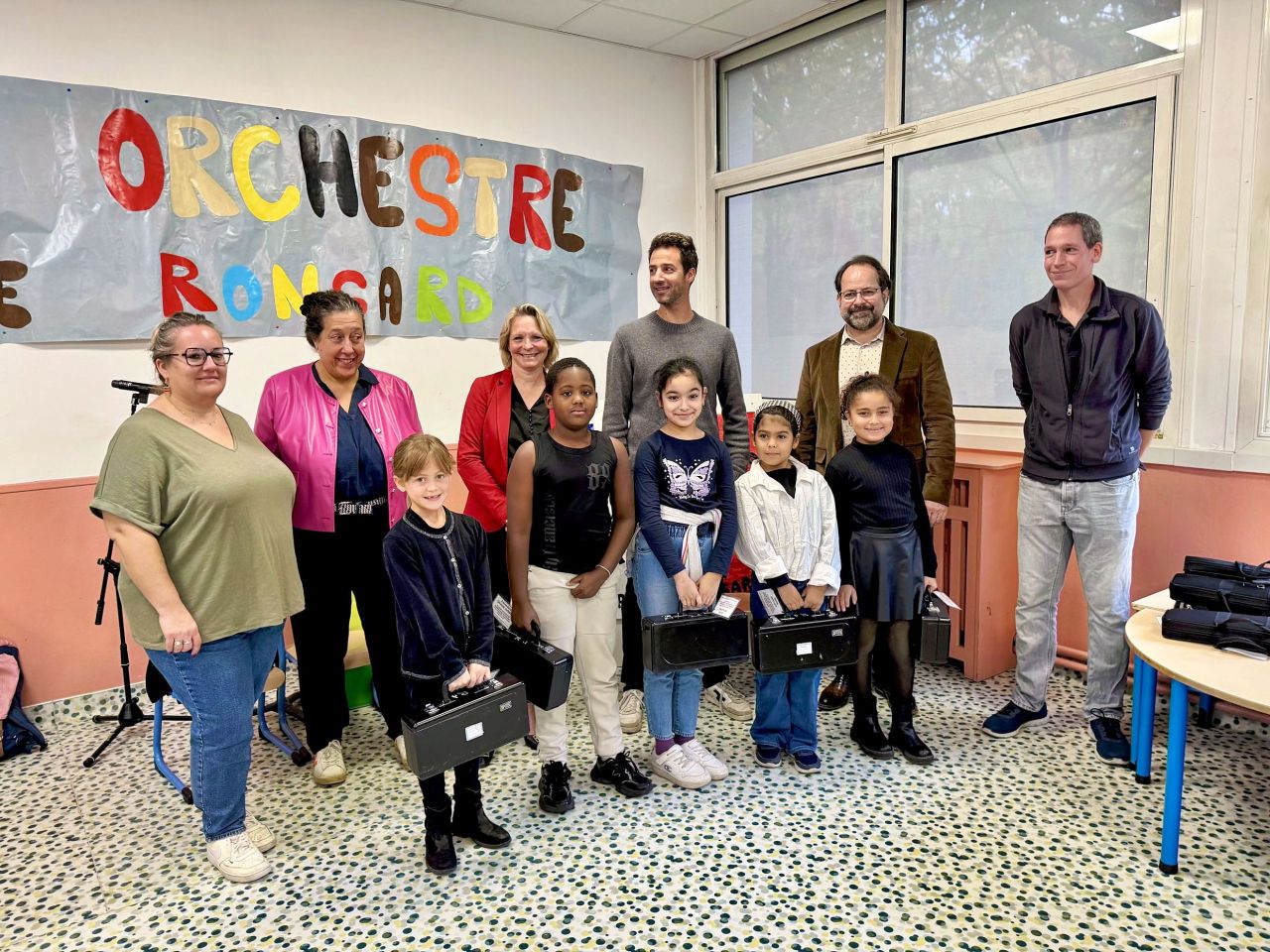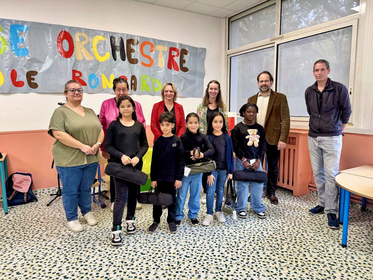 Ce lundi 13 octobre , les élèves de la classe orchestre commencent officiellement leur cycle Orchestre à l'école pour une durée de trois ans. En présence de Madame le Maire et de son équipe, du directeur du conservatoire et des professeurs de musique , des représentants de l'inspection de l'Education nationale et devant des parents ravis, nos futurs musiciens étaient impatients et très heureux de recevoir leurs instruments.